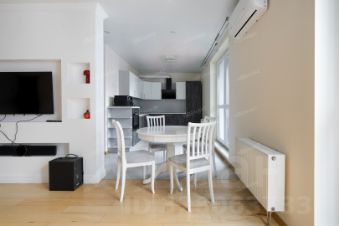 Планировка - просторная гостиная с оборудованной кухней с выходом на застекленный балкон, спальня, кабинет/гостевая, два санузла (ванна и душевая). Комфортабельная мебель, современная техника. Кондиционер, теплый пол. Окна кухни-гостиной и спальни выходят в тихий закрытый внутренний двор. В квартире только что закончили косметический ремонт.