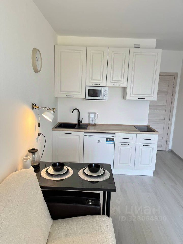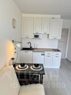 Самое большое по площади место в данном пространстве. Кухня снабжена двухкомфорочной электроплитой (стеклокерамика), микроволновой печью, встроенной вытяжкой, обьемным холодильником(да-да, обьемным! Это вам не куцие кубики из отелей! А полноценный агрегат!)
