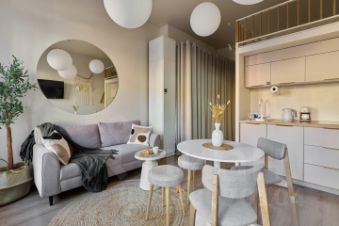 Светлая студия с антресолью в центре Невского: сканди-стиль, уют и комфорт в самом сердце Петербурга.