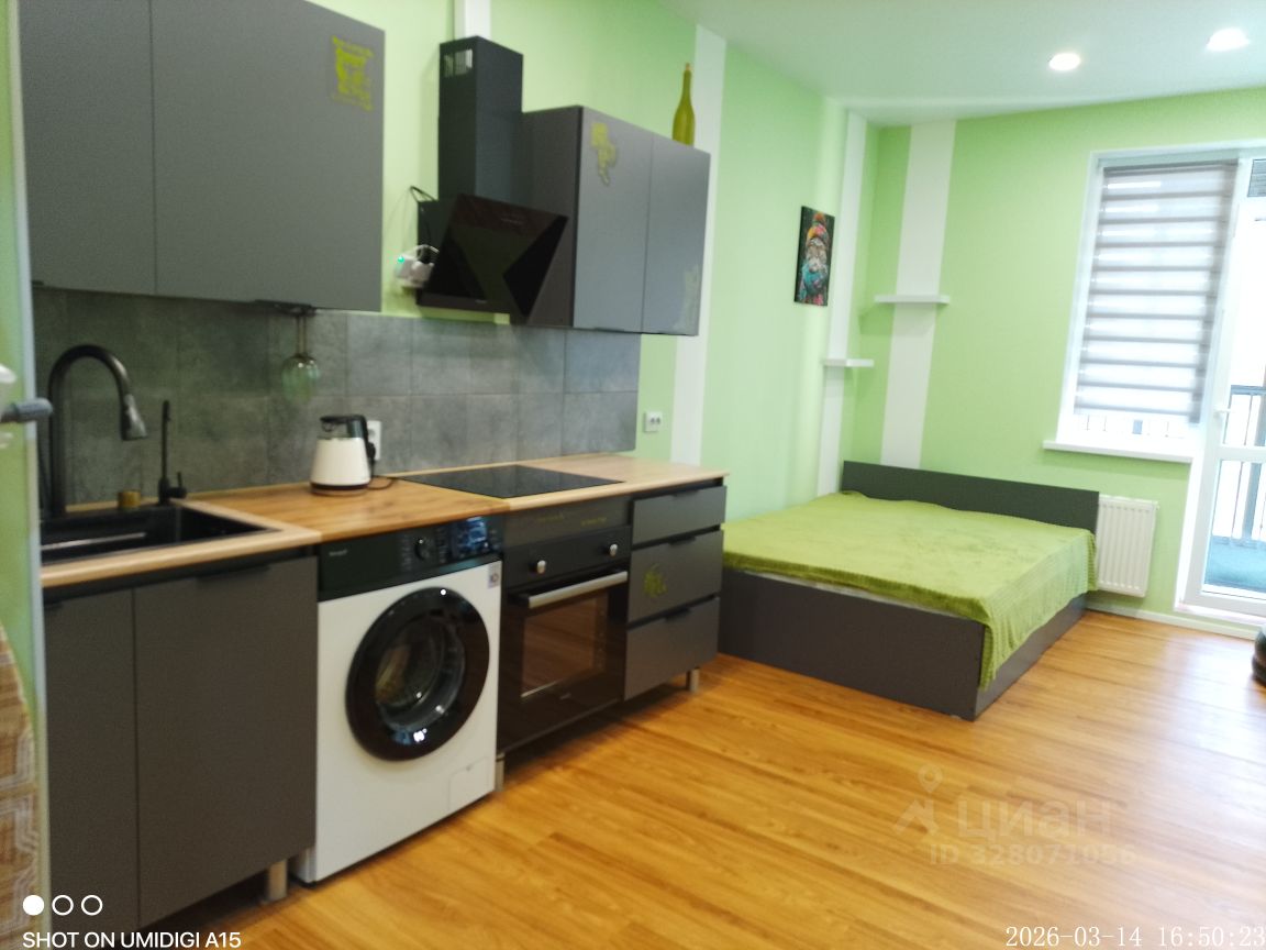 Квартира порадует дизайнерским ремонтом и уютной обстановкой. В студии есть вся необходимая мебель как в комнате, так и на кухне. Для вашего удобства установлены холодильник и стиральная машина. Ванная комната оснащена современной ванной, а совмещенный санузел отличается функциональностью. Также в квартире есть просторная лоджия, где можно отдохнуть с чашкой кофе.