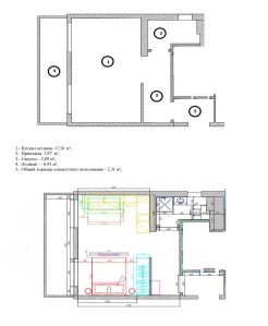 просторная кухня-гостиная (18 м²) с двумя окнами в пол — много света и воздуха;