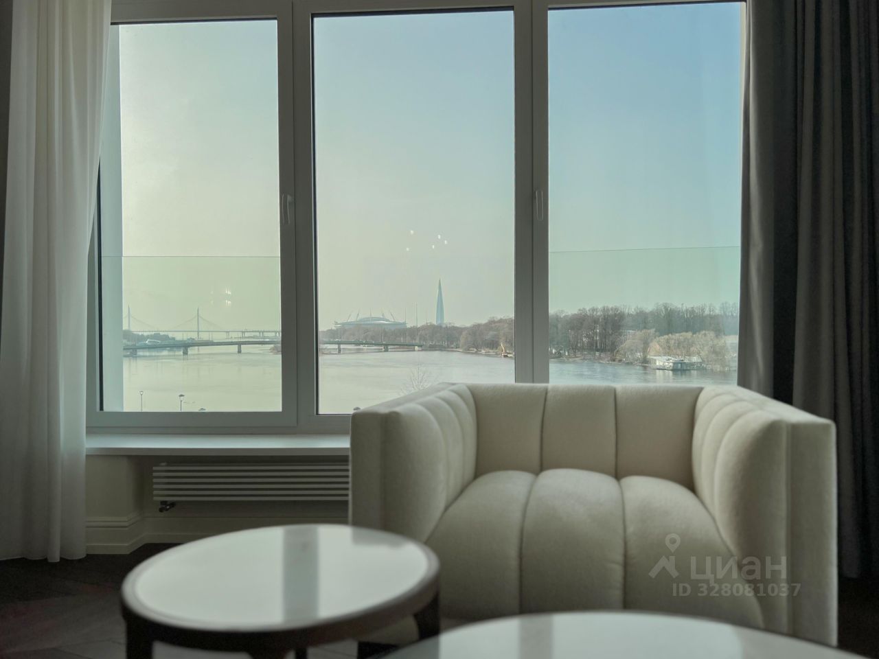 Вид: на залив , Газпром Арену, Лахта-центр и реку Малая Невка