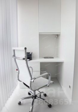 Лоджия застеклена до пола и закрыта жалюзями с дистанционным управлением, здесь сделан стол и оборудовано рабочее место.