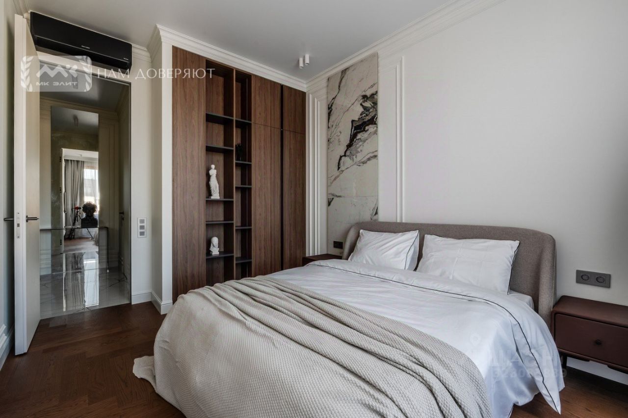 Квартира оснащена всей необходимой мебелью и премиальной техникой: стиральная и сушильная машина Asko, холодильник Liebherr, варочная поверхность со встроенной вытяжкой Elica Nicola Tesla, духовой шкаф Bosh. Установлена система кондиционирования и смонтирован теплый пол.