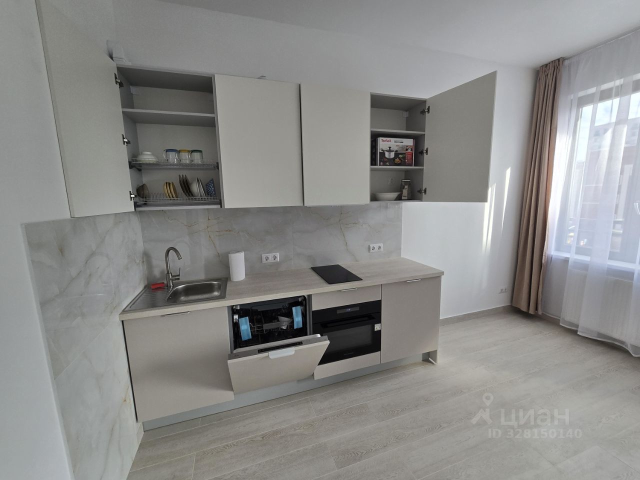 - Техника: стиральная машина, плита, микроволновая печь, посудомоечная машина