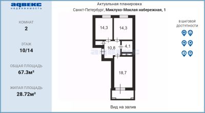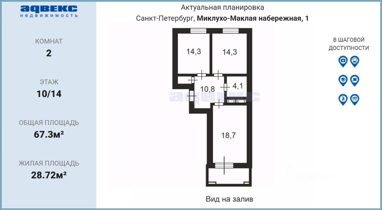 Без комиссии сдаем на длительный срок дизайнерскую двух комнатную квартиру с одним из самых красивых видов на Финский залив на набережной Миклухо Маклая, на Васильевском острове.