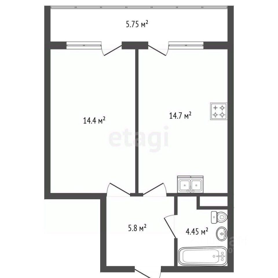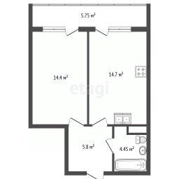 Площадь 45 м², 12-й этаж, просторная планировка с изолированной спальней и зонированной кухней-гостиной .