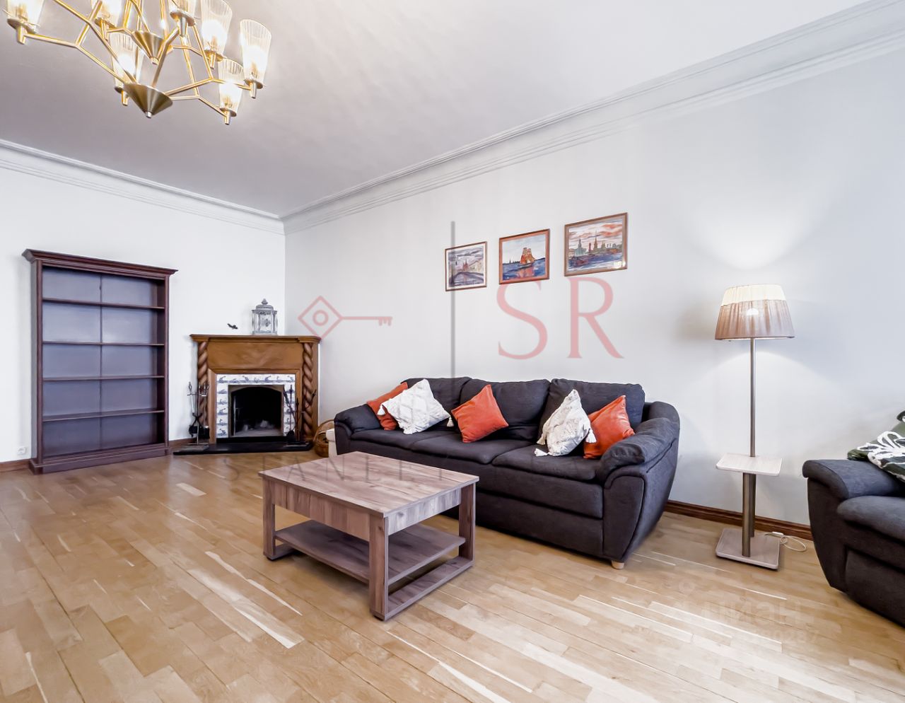 Планировка: гостиная с рабочим камином и видом на Петропавловскую крепость; кухня со всей необходимой техникой; спальня с ванной, из которой можно наблюдать за огнями ночного города; спальня с балконом, который выходит во двор; комната свободного назначения; два полноценных санузла, один с ванной, другой с душем; прихожая; несколько гардеробных и большое количество мест для хранения вещей.