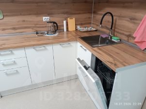 Кухня выполнена на заказ из качественных материалов. Есть большой холодильник, посудомоечная машина, мультиварка, духовой шкаф, электрочайник и встроенные фильтры для воды. Стол раздвигается.
