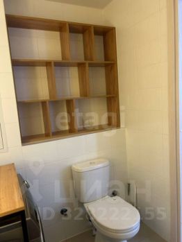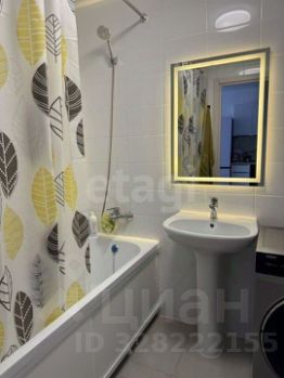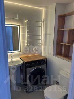 В санузле установлена стиральная машина, электрический полотенцесушитель, зеркало с подсветкой