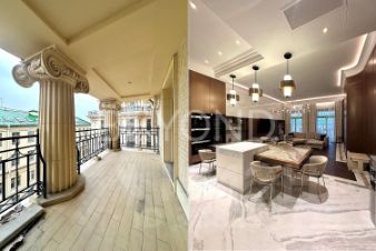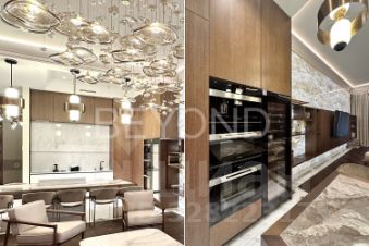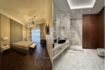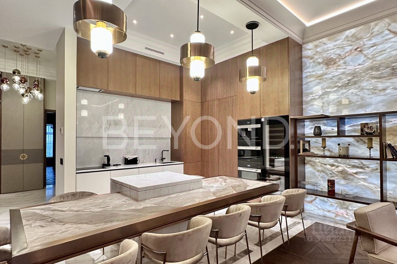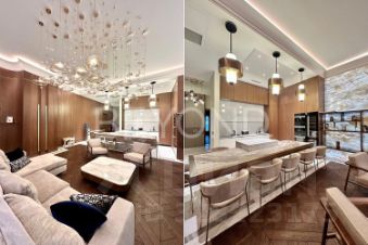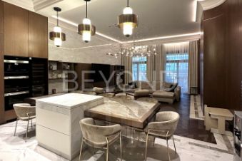 Высокие потолки 3,8 метра, обилие естественного света и различные сценарии освещения управляют восприятием пространства. Современный премиум-дизайн с вниманием к пропорциям, мебель и техника лучших европейских производителей, грамотные акценты, оникс с выразительной графикой, мрамор и дерево создают баланс и чистоту интерьера.