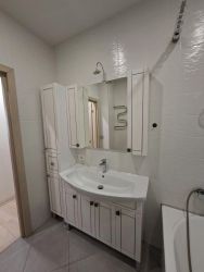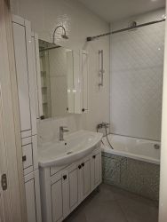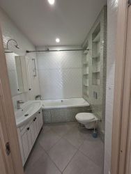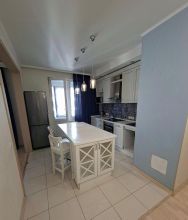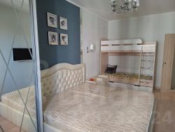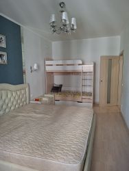 В квартире есть всё необходимое для комфортной жизни: кухонный гарнитур, посудомоечная машина, холодильник, стиральная машина, микроволновая печь, электрическая варочная панель, духовой шкаф, пылесос, электрочайник, двуспальная кровать, двуспальный раскладной диван, двухярусная детская кровать, большая застекленная лоджия, гардеробная.