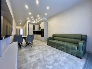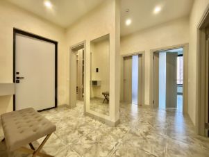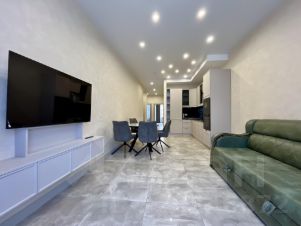 В квартире выполнен дизайнерский ремонт, который подчёркивает современность и уют. Жилая площадь составляет 25 кв. м, а кухня поражает своими размерами — 23 кв. м, поэтому можно комфортно готовить и проводить время с семьёй и друзьями. Квартира полностью меблирована: мебель на кухне и в комнатах, а также оснащена всей необходимой техникой — кондиционер, холодильник, посудомоечная и стиральная машины, телевизор. В ванной комнате установлена ванна, поэтому можно расслабиться после долгого дня. Вторую спальню можно обставить мебелью в счет аренды.