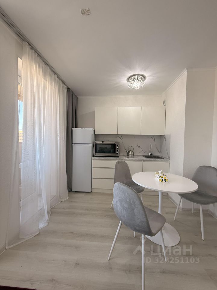 Квартира с евроремонтом, готова к проживанию. В студии установлена вся необходимая техника: холодильник и стиральная машина. Мебель расположена как на кухне, так и в комнате, что делает пространство уютным и функциональным. Санузел совмещённый, с ванной — идеальное место для расслабления после долгого дня. На балконе можно обустроить зону отдыха или использовать его для хранения.