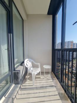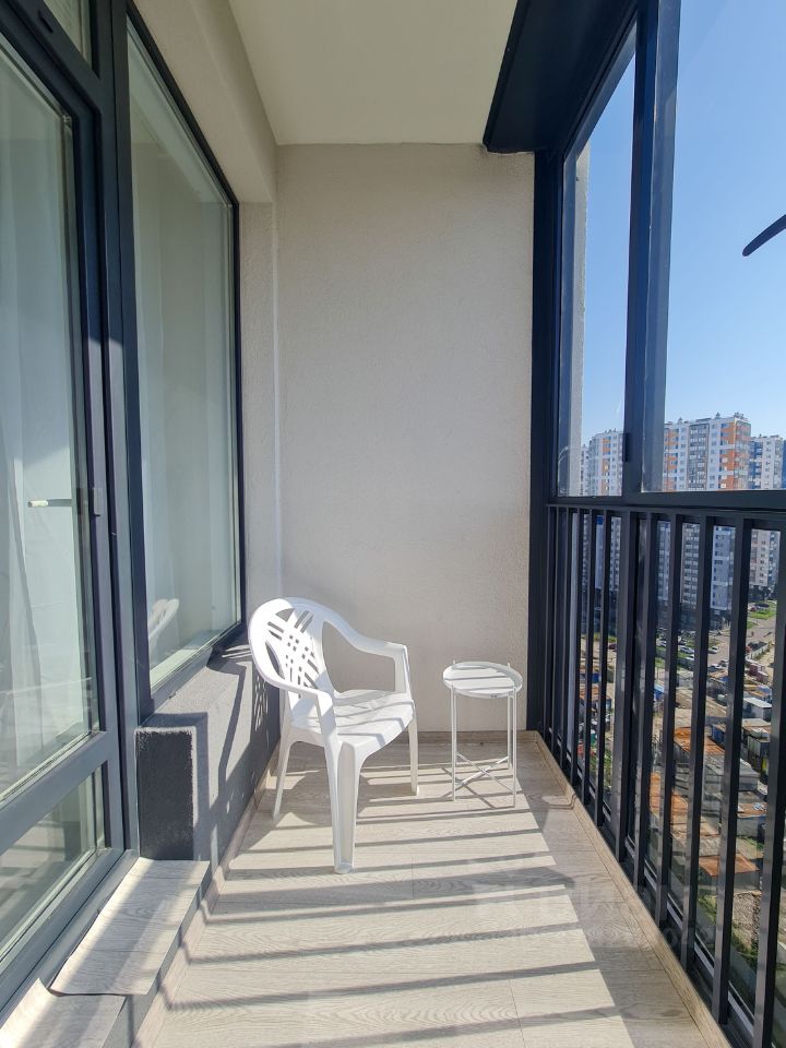 Квартира в отличном состоянии, очень светлая, чистая и аккуратная, укомплектована всей необходимой мебелью и бытовой техникой. В качестве спального места используется раскладывающийся диван. Для дополнительного комфорта предусмотрен подогрев пола в ванной комнате.