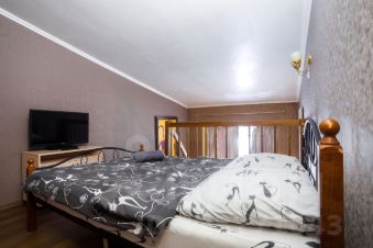 - двуспальная кровать на верхнем уровне, двуспальный диван на нижнем уровне, вместительный шкаф;