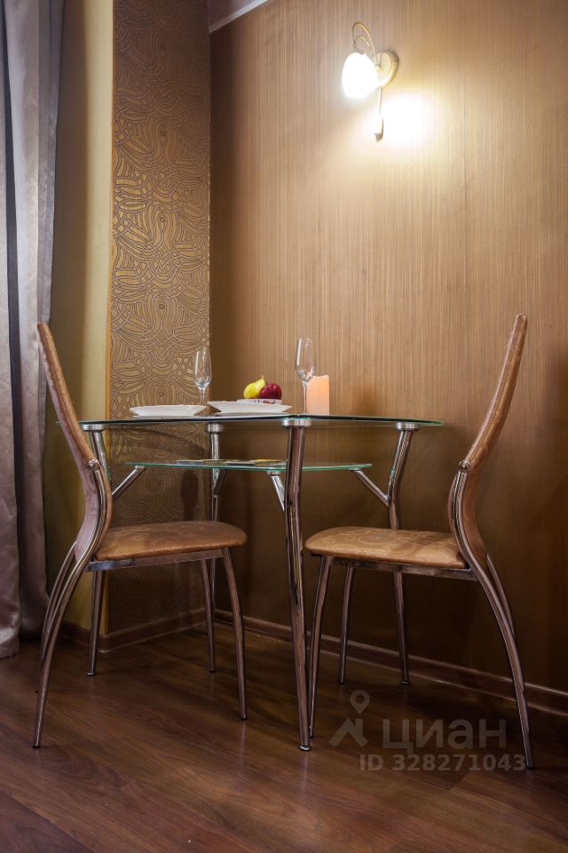 - кухонный гарнитур, раковина, плита, холодильник, микроволновая печь, электрический чайник, столовые приборы и посуда, обеденный стол и стулья;