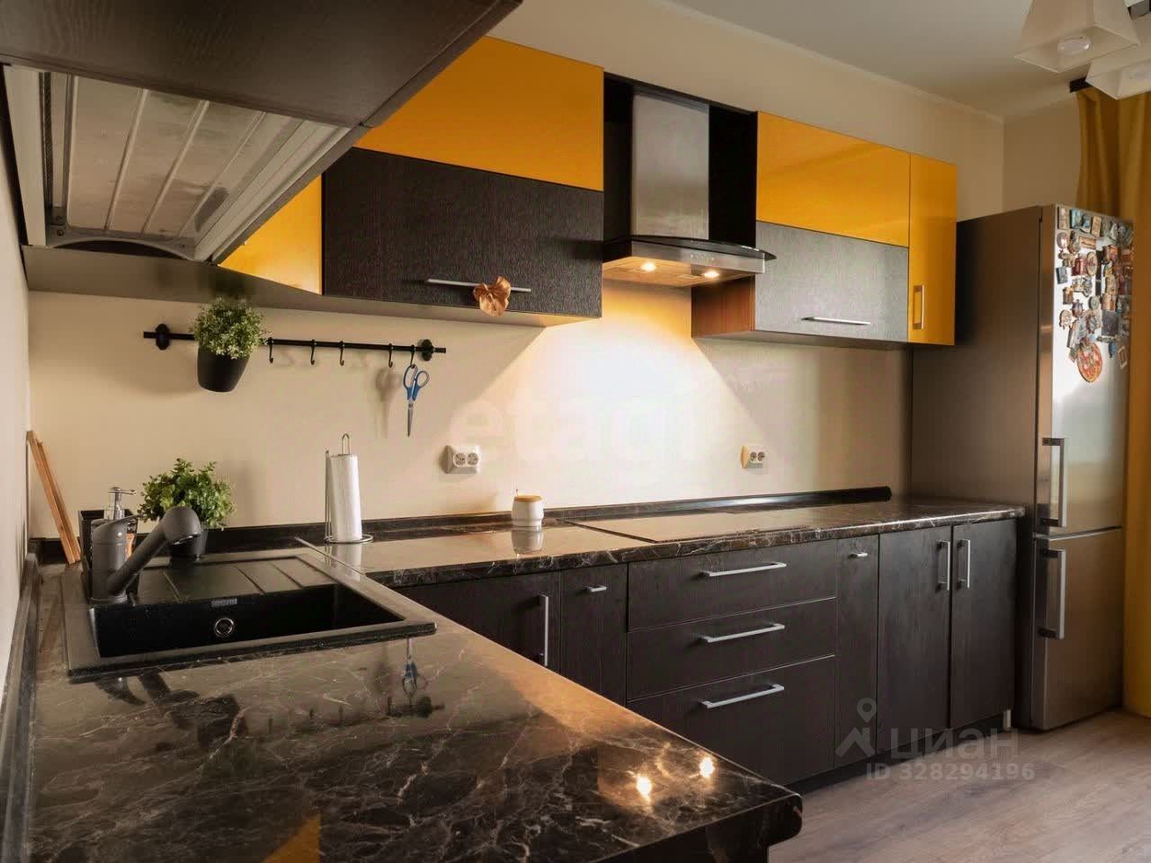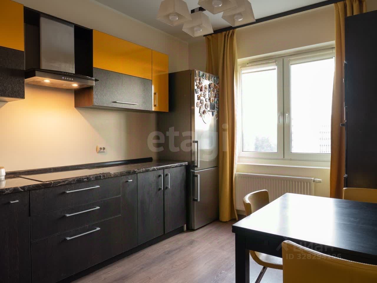 Планировка квартиры включает просторную кухню, изолированную комнату и совмещенную ванную комнату.