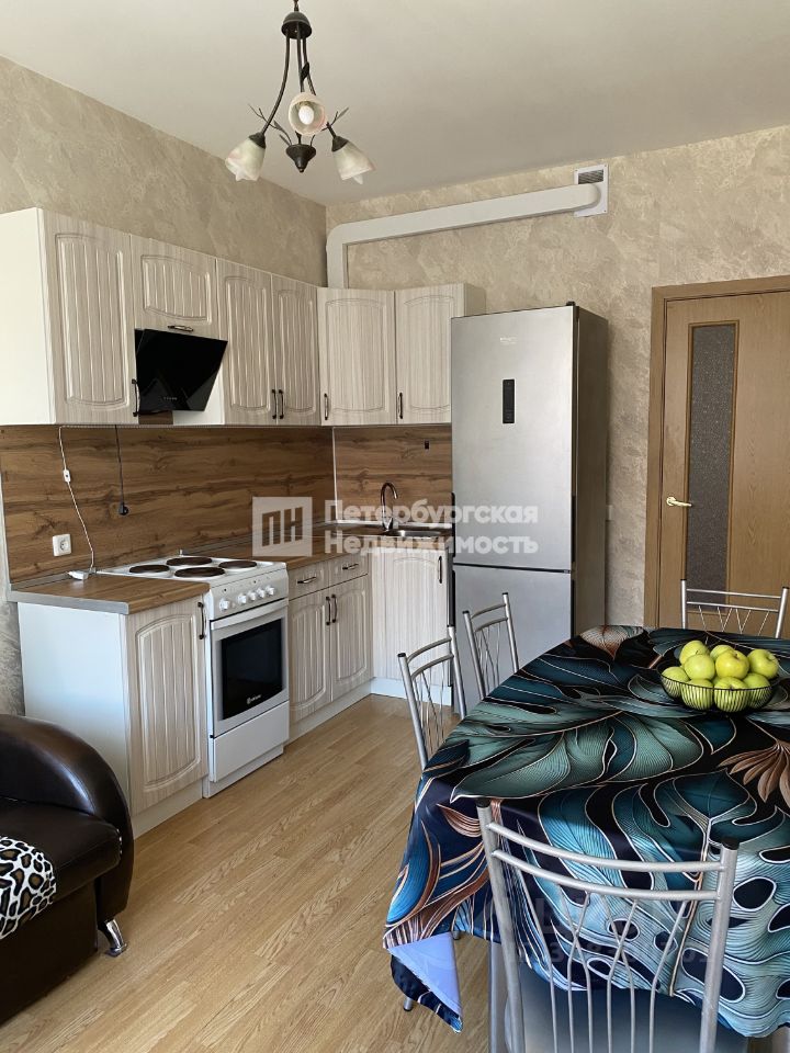 Кухня: современный гарнитур, электрическая 4-х комф. плита , вытяжка, вместительный холодильник.