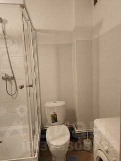 Санузел совмещённый, просторный, душевая кабина, стиральная машинка.