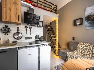 * уютная студия с продуманным интерьером;