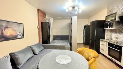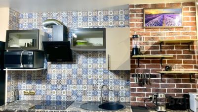 - Кухню-гостиную, оборудованной всей необходимой бытовой техникой (также есть дополнительное спальное место)
