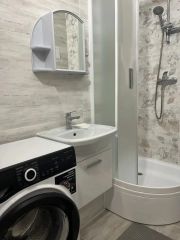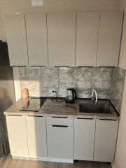 В квартире имеется всё самое необходимое для комфортного проживания: большой диван Аскона Антарес Про с удобным анатомическим матрасом и ящиком для хранения белья, двухкамерный холодильник надежного производителя с системой No Frost, удобный кухонный гарнитур, варочная панель и электрический чайник надежных мировых брендов, светодиодное освещение с дистанционным управлением (De City Madlen), два небольших столика(из Икеи и раскладной), раскладные стулья, в санузле: душевая кабина, стиральная машина Hotpoint на 7кг белья, полотенцесушитель, сушилка для белья на балконе, в коридоре вместительный шкаф для одежды с зеркальными дверцами. Wifi роутер (будет подключен к интернету по факту заселения). Вся техника абсолютно новая.