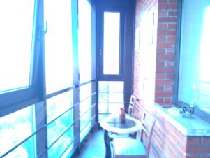 Лоджия с панорамным остеклением и зоной отдыха.