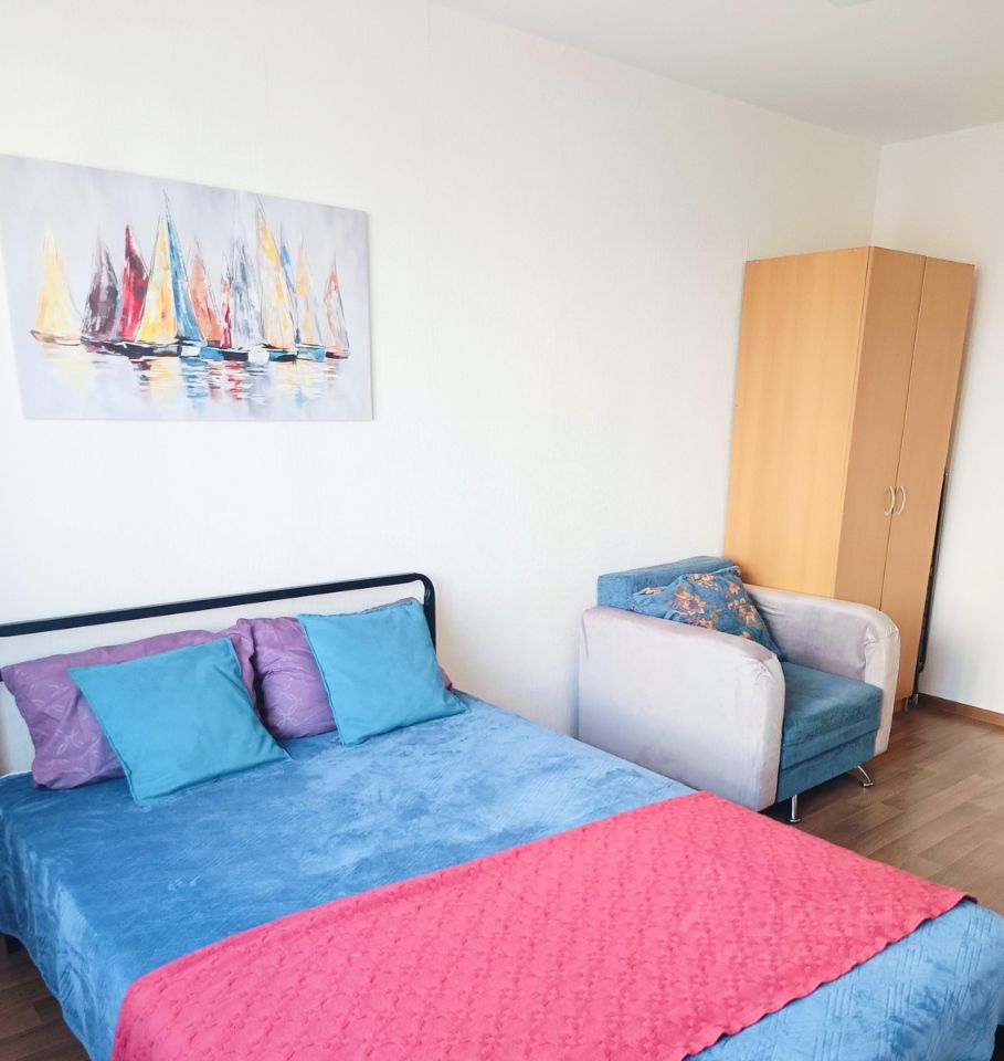 Квартира с косметическим ремонтом и полностью готова для комфортного проживания. В комнате и на кухне есть вся необходимая мебель. Из техники — холодильник и стиральная машина, которые обеспечат вам удобство в повседневной жизни. Санузел совмещённый, есть ванна, что очень удобно для вечернего расслабления после рабочего дня.