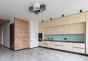 В кухне установлен кухонный гарнитур со всей необходимой бытовой техникой и обеденный стол. Две спальные комнаты укомплектованы двуспальными кроватями.