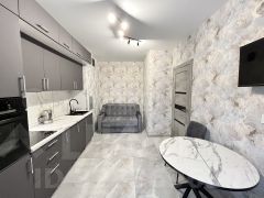 • Кухня-гостиная: Уютное пространство, где вы сможете готовить и отдыхать. Кухня укомплектована всей необходимой бытовой техникой: варочная поверхность, духовой шкаф, вытяжка, микроволновая печь, электрический чайник и холодильник. В гостиной установлен раскладной диван, который может служить дополнительным спальным местом для гостей. Также имеется второй Smart телевизор. Из кухни есть выход на балкон, где можно насладиться свежим воздухом.