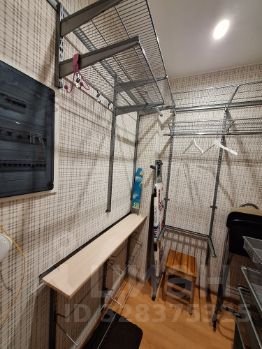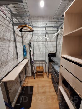 Есть отдельная гардеробная с системой хранения и тёплый застекленный балкон 13 м с тёплым полом, шкафом и рабочим местом.