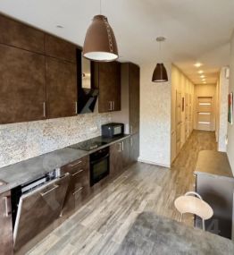 - Гостиная с лоджией и зоной отдыха совмещена с кухней