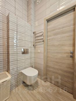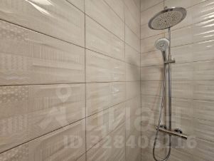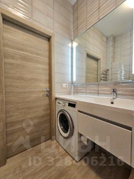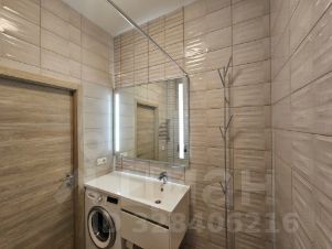 Санузел совмещенный. Установлена стиральная машина, тумба и зеркальный шкаф с подсветкой. Просторная душевая кабина.