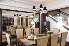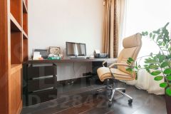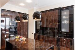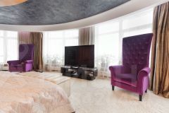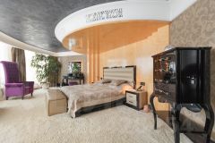 На первом уровне расположена зона кухни-столовой и гостиной 65 кв.м, гостевой сан. узел, второй сан. узел с ванной, также оборудована постирочная комната со стиральной и сушильной машиной, детская 24 кв.м с выходом на открытый балкон и кабинет 18 кв.м. с зонированной рабочей зоной и диваном. На втором уровне расположена просторная спальня с панорамным остеклением и выходом на оборудованную террасу, с который открывается приятный вид на воду и город. Также на втором этаже оборудованы мужская и женская гардеробные, основной сан. узел с джакузи и душевой кабиной. Квартира оснащена всей необходимой бытовой техникой, включая приточно-вытяжную вентиляцию.