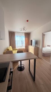 Предлагается в долгосрочную аренду современную 1-комнатную квартиру общей площадью 32,1 кв.м. Объект сдаётся впервые.