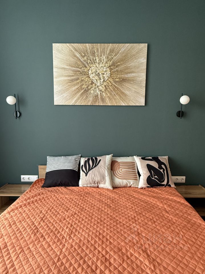 - Спальня: двуспальная кровать с ящиками для хранения, большой шкаф