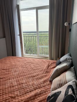 Расположена на 12-м (последнем) этаже высокие потолки 3м, панорамные окна в пол с видом на парк