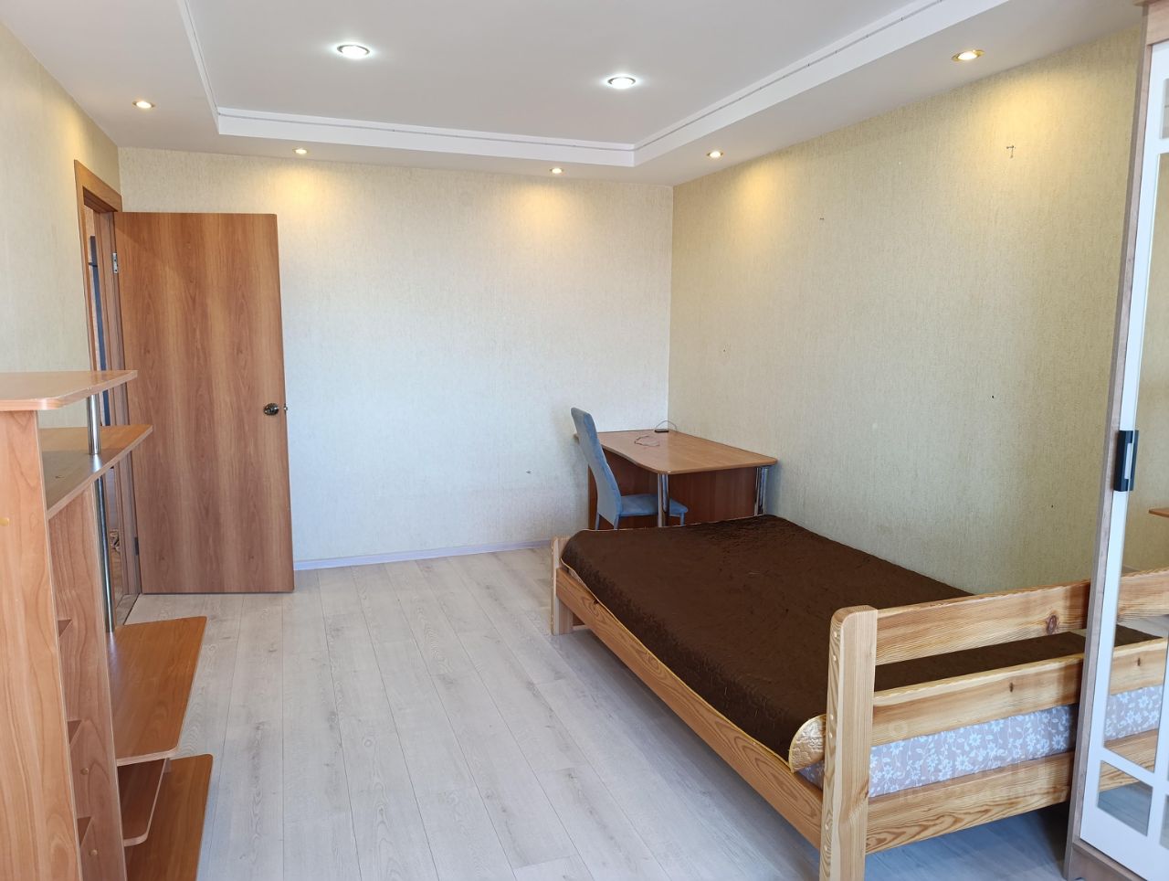 Комната большая и светлая, со шкафом, рабочим столом и кроватью