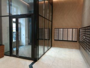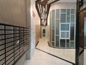 4 лифта, в холле есть колясочная, также на этажах есть помещения для хранения колясок, велосипедов, т.д.