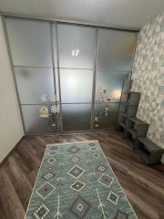 Пространство организовано особенно удобно: одна комната разделена на две полноценные зоны, балкон утеплен и сделан как кабинет(можно использовать и зимой и летом) поэтому квартира ощущается более функциональной и комфортной для повседневной жизни. Есть отдельная спальная зона с двуспальной кроватью, вместительные шкафы-купе и дополнительные места для хранения.