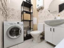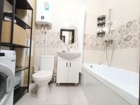В санузле установлен водонагреватель на случай отключения горячей воды.
