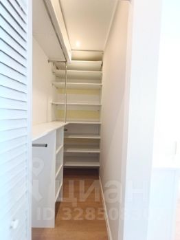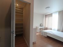 В комнате новая кровать с ортопедическим матрасом. На окнах шторы блэкаут. Для хранения вещей обустроена гардеробная.