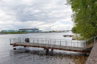На придомовой территории оборудованы спортивные и детские площадки со специальным покрытием. Двор без машин. Оборудованная набережная для прогулок.