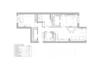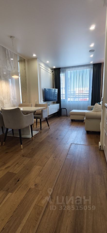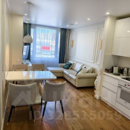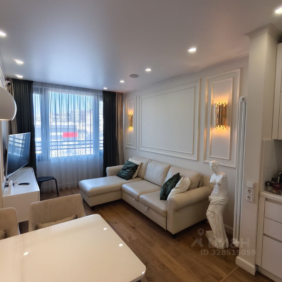 Квартира с дизайнерским ремонтом с двумя спальными и кухней гостинной.