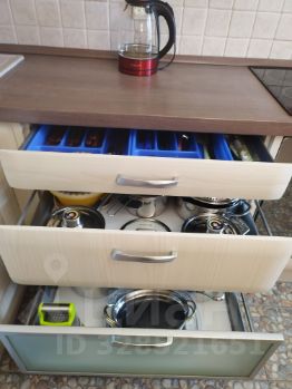 Квартира мебелью не перегружена.В комнате только большая двухспальная кровать ,и телевизор .Мечта всех женщин просторная ,оборудованная гардеробная 4,5 кв м.Вход из комнаты.Также два шкафа в прихожей.Уютная кухня с кондиционером.Новая стиральная машина.Есть вся необходимая посуда .За ненадобностью могут вывезти.Вход на застеклённую лоджию из кухни. Вид во двор.