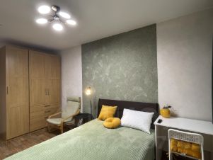 О комнате. Тоже солнечная, спальное место-кровать с ортопедическим матрасом Икея после химчистки. Шторы с затемнением блэкаут. Текстиль весь новый. Вместительный гардероб Пакс Икея с выдвижными корзинами.