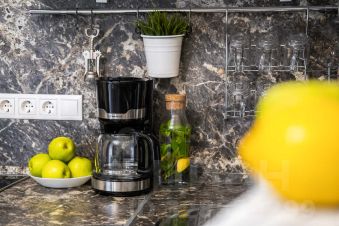 - Полностью оборудованная кухня: капельная кофеварка, посудомоечная машина, микроволновая печь, духовой шкаф, варочная панель, а также вся необходимая посуда и бокалы.