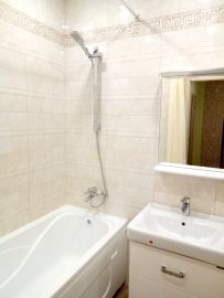 Отделка квартиры доведена до ума, в ванной комнате выполнен качественный ремонт с кафельной плиткой. В квартире есть застеклённая панорамная лоджия с остеклением в пол, с отделкой пола.
