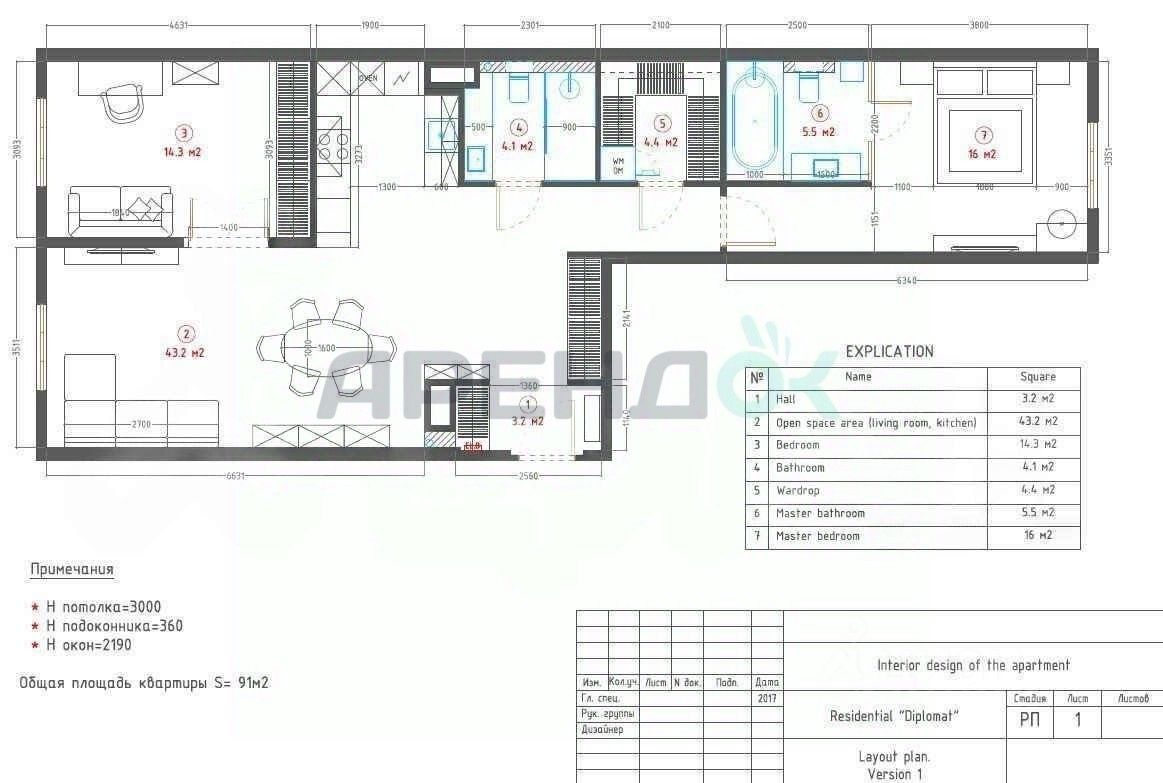 91 м²